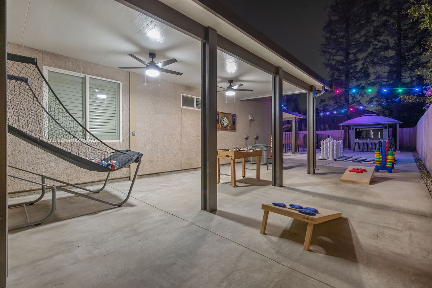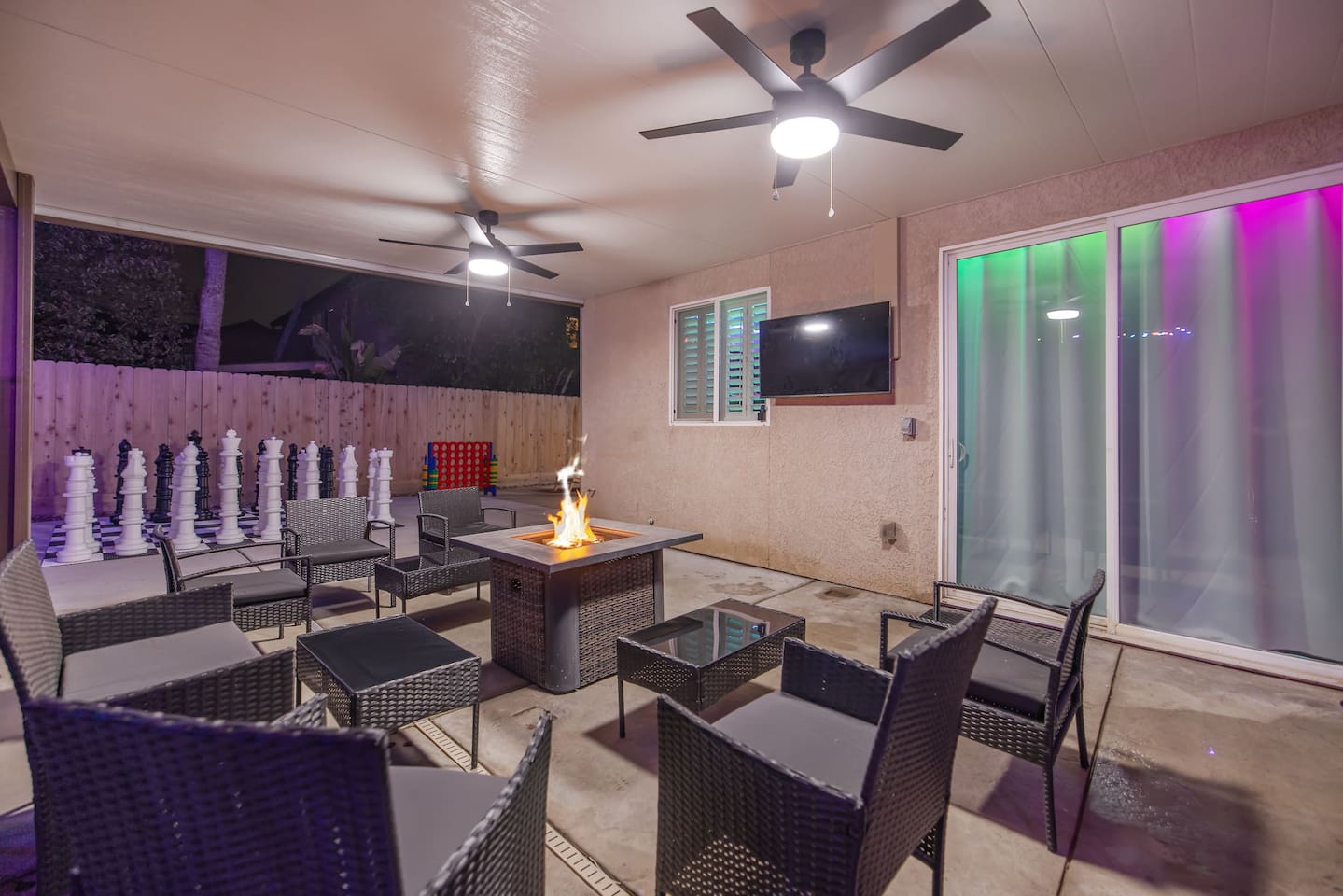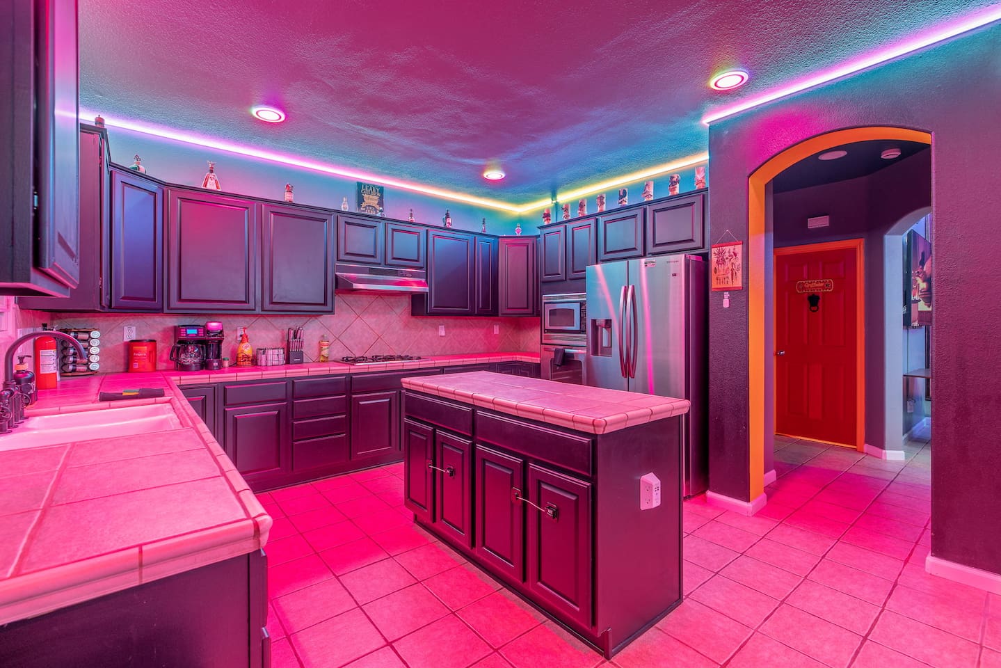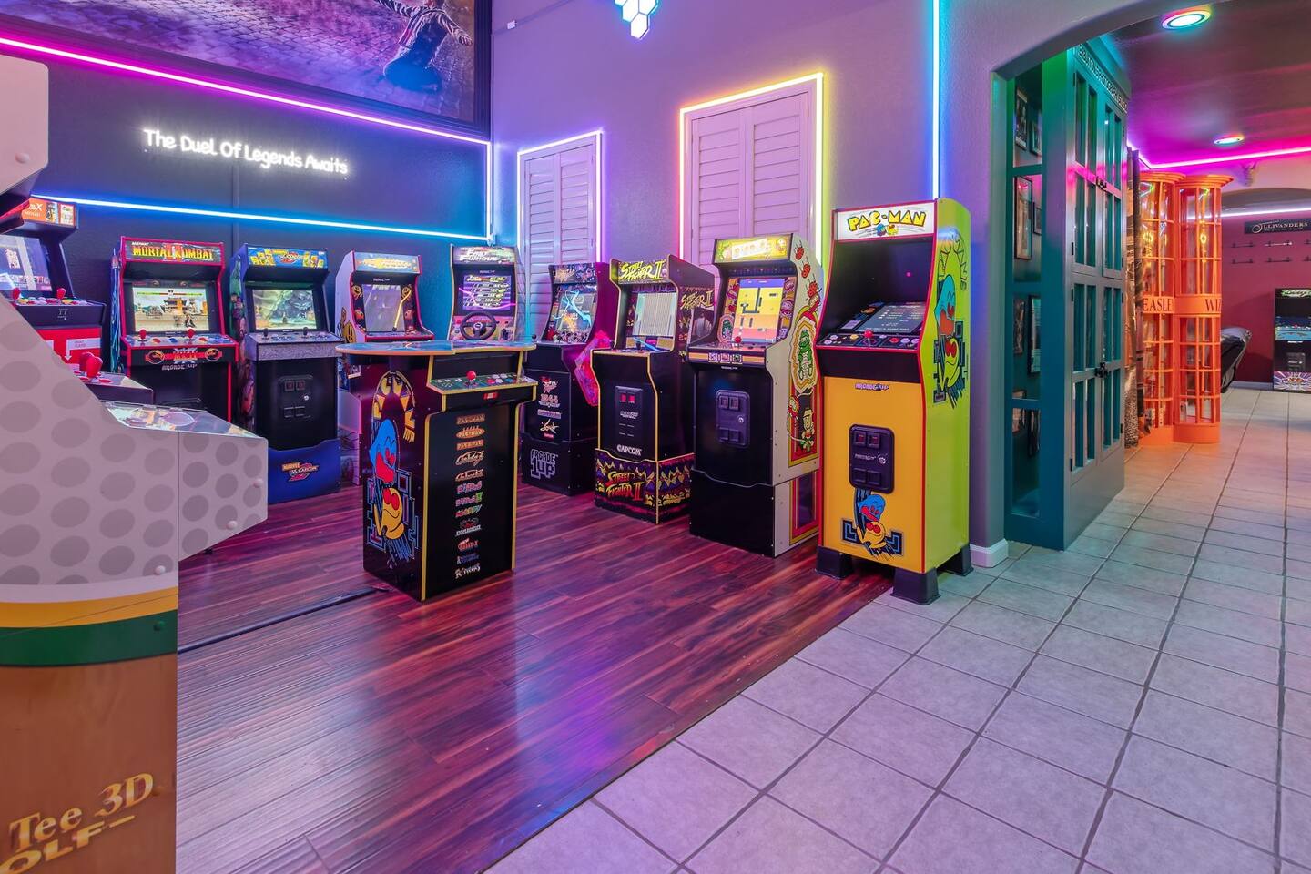 As you step through the front door, you're welcomed by a full-size arcade surrounded by two wall-to-wall fantasy-themed murals. Fully customizable color-changing lighting lines the entire first floor, creating an immersive atmosphere from the moment you arrive. Continue down the hallway into a charming old-world marketplace setting featuring two full-scale themed storefront façades — a whimsical novelty shop and a vintage-style magical studio — designed to transport you into a world of imagination. The dining area has been transformed into a grand medieval-inspired banquet space, complete with two 75” TVs, a PS5, and a Nintendo Switch — perfect for gaming nights and group entertainment. The living room features a MASSIVE 98” TV, interactive fantasy décor elements, a themed study display, and several "photo-op" moments! As you head upstairs, you’ll pass through a gallery-style hallway lined with portrait art, leading into a darker, mystery-inspired corridor featuring a full-size antique magic shop façade. For added fun, there’s even a playful themed “fantasy jail” photo area. Each bedroom embraces a different fantasy-inspired theme. The master suite features a king-size bed and a dramatic dark fantasy aesthetic, including mystical décor elements, serpent-inspired accents, and a fantasy inspired spa bathroom. Step outside onto the private balcony and relax in comfortable seating after a long day exploring nearby mountain trails and natural attractions. The outdoor space continues the experience with: • Large pebble-finish pool • 7-person hot tub • Mini golf • Giant chess • Giant Jenga • Basketball • Foosball • Bar shed with TV & mini fridge ....& Much, Much More! Treat your group to a one-of-a-kind immersive fantasy stay near Sequoia National Park. *This property includes an attached ADU (Accessory Dwelling Unit) that is rented separately. Both units are kept completely separate with no shared spaces*