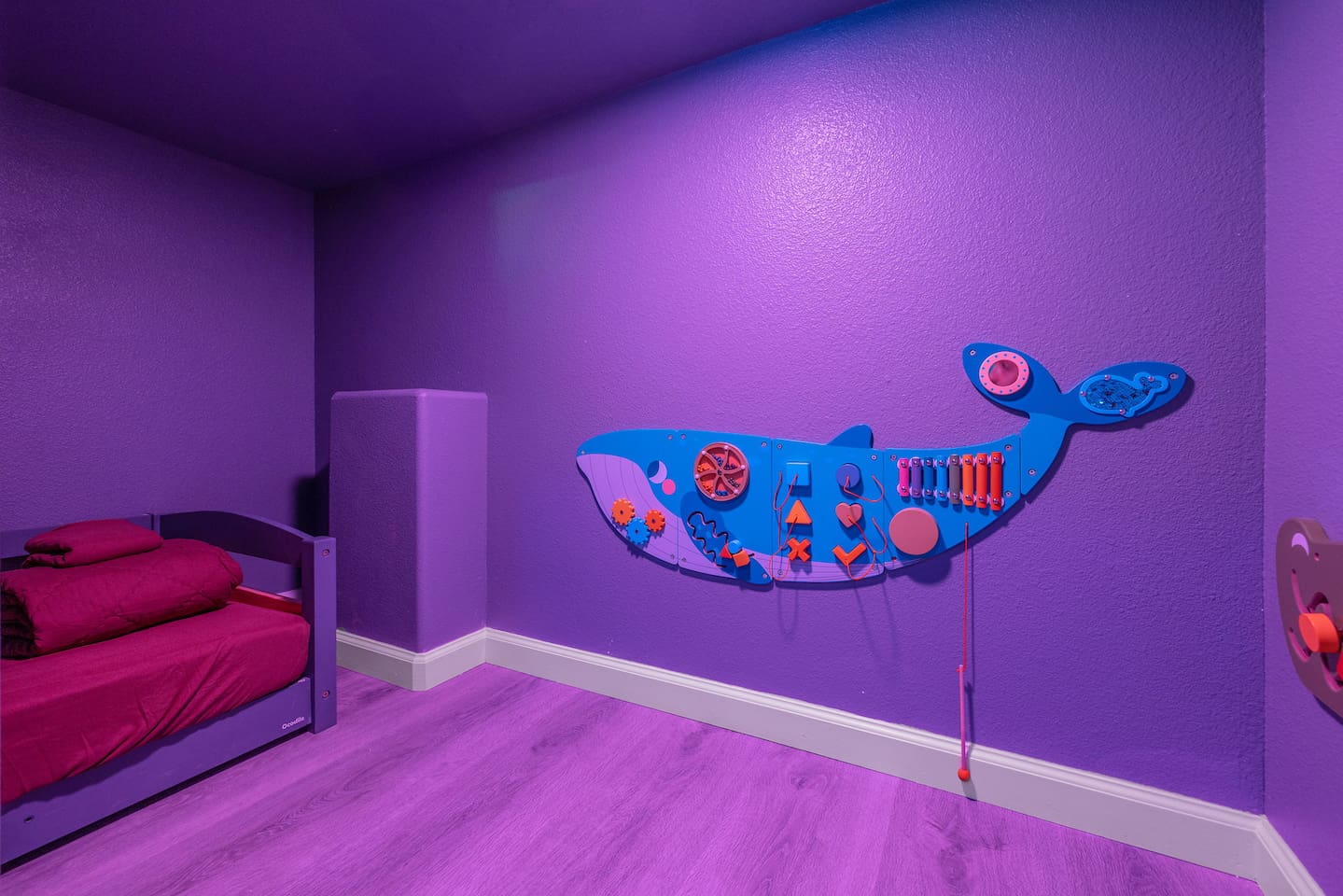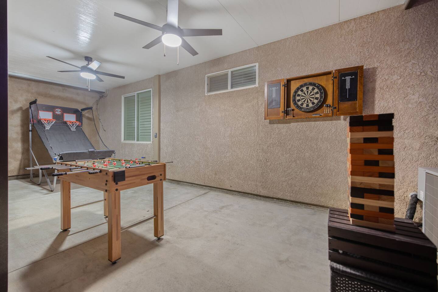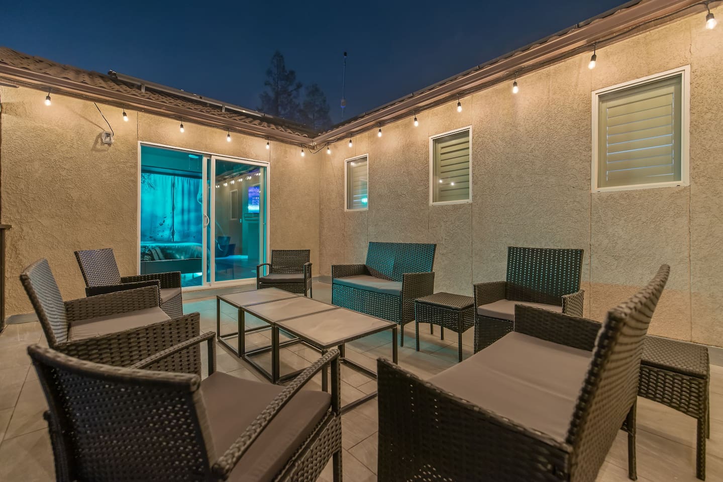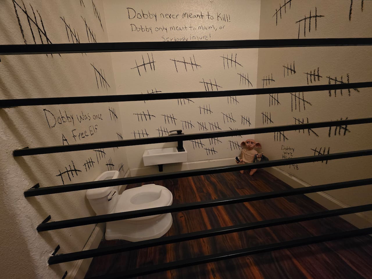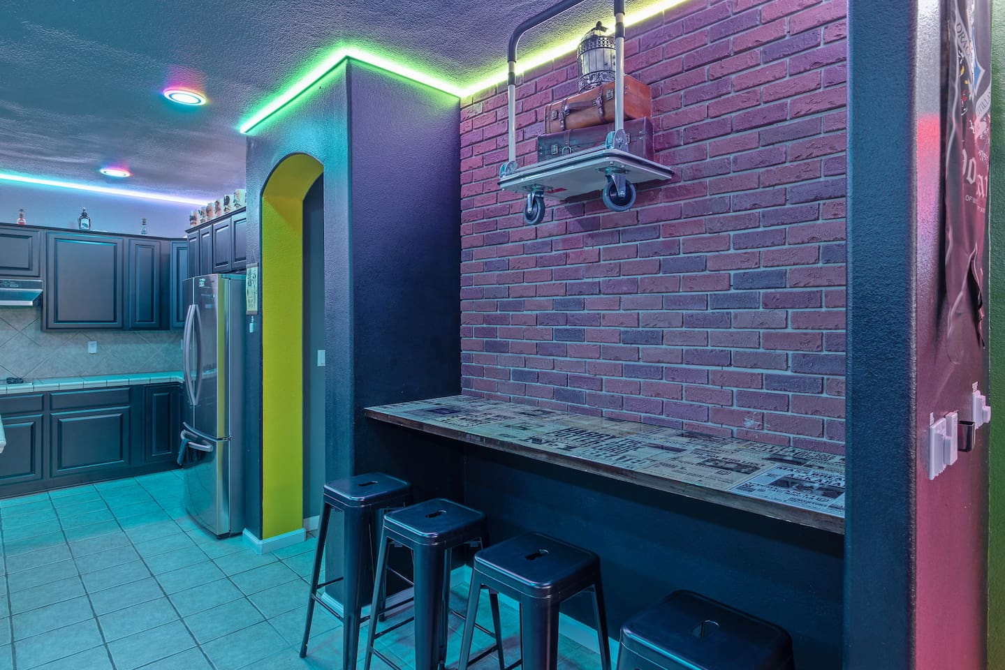 As you step through the front door, you're welcomed by a full-size arcade surrounded by two wall-to-wall fantasy-themed murals. Fully customizable color-changing lighting lines the entire first floor, creating an immersive atmosphere from the moment you arrive. Continue down the hallway into a charming old-world marketplace setting featuring two full-scale themed storefront façades — a whimsical novelty shop and a vintage-style magical studio — designed to transport you into a world of imagination. The dining area has been transformed into a grand medieval-inspired banquet space, complete with two 75” TVs, a PS5, and a Nintendo Switch — perfect for gaming nights and group entertainment. The living room features a MASSIVE 98” TV, interactive fantasy décor elements, a themed study display, and several "photo-op" moments! As you head upstairs, you’ll pass through a gallery-style hallway lined with portrait art, leading into a darker, mystery-inspired corridor featuring a full-size antique magic shop façade. For added fun, there’s even a playful themed “fantasy jail” photo area. Each bedroom embraces a different fantasy-inspired theme. The master suite features a king-size bed and a dramatic dark fantasy aesthetic, including mystical décor elements, serpent-inspired accents, and a fantasy inspired spa bathroom. Step outside onto the private balcony and relax in comfortable seating after a long day exploring nearby mountain trails and natural attractions. The outdoor space continues the experience with: • Large pebble-finish pool • 7-person hot tub • Mini golf • Giant chess • Giant Jenga • Basketball • Foosball • Bar shed with TV & mini fridge ....& Much, Much More! Treat your group to a one-of-a-kind immersive fantasy stay near Sequoia National Park. *This property includes an attached ADU (Accessory Dwelling Unit) that is rented separately. Both units are kept completely separate with no shared spaces*