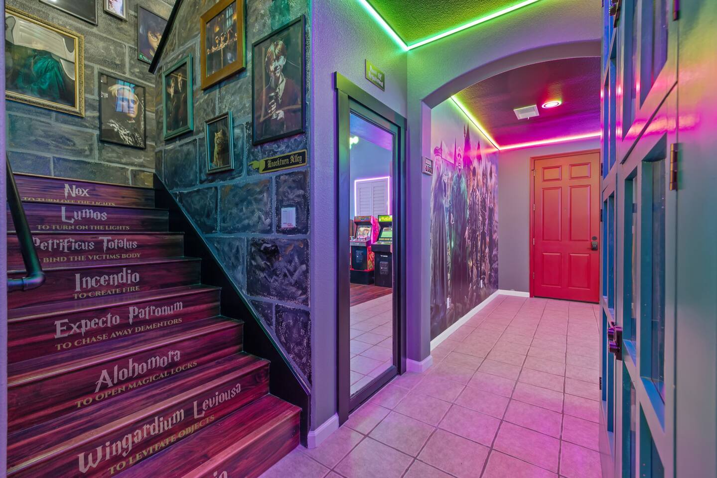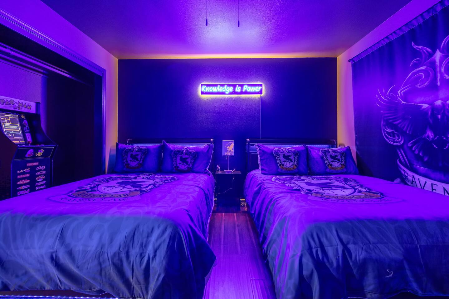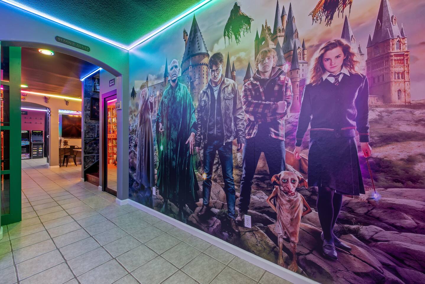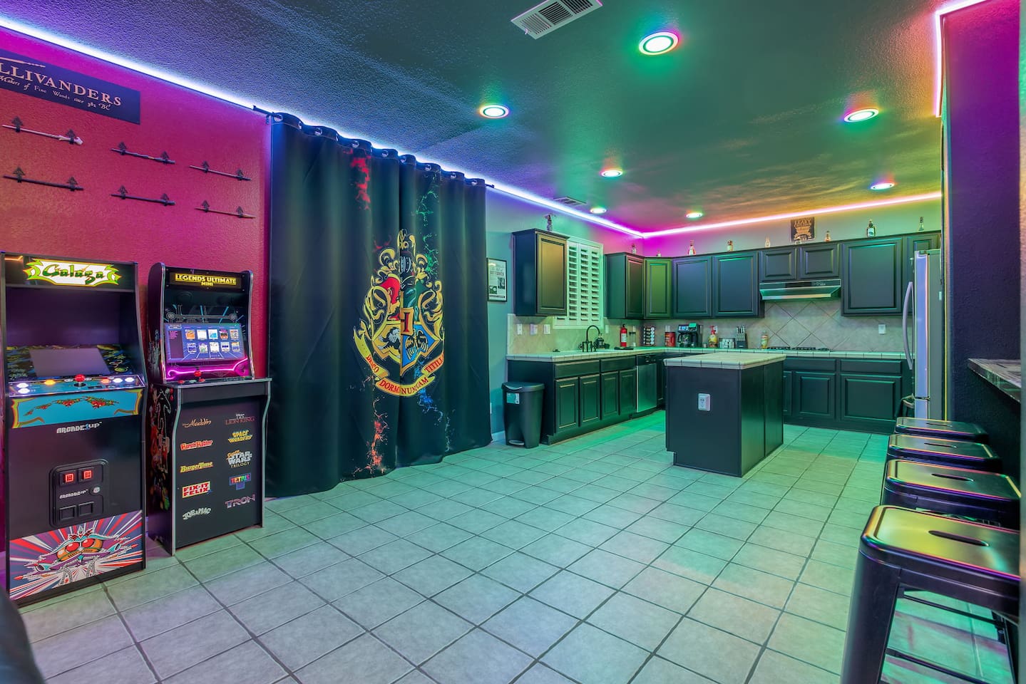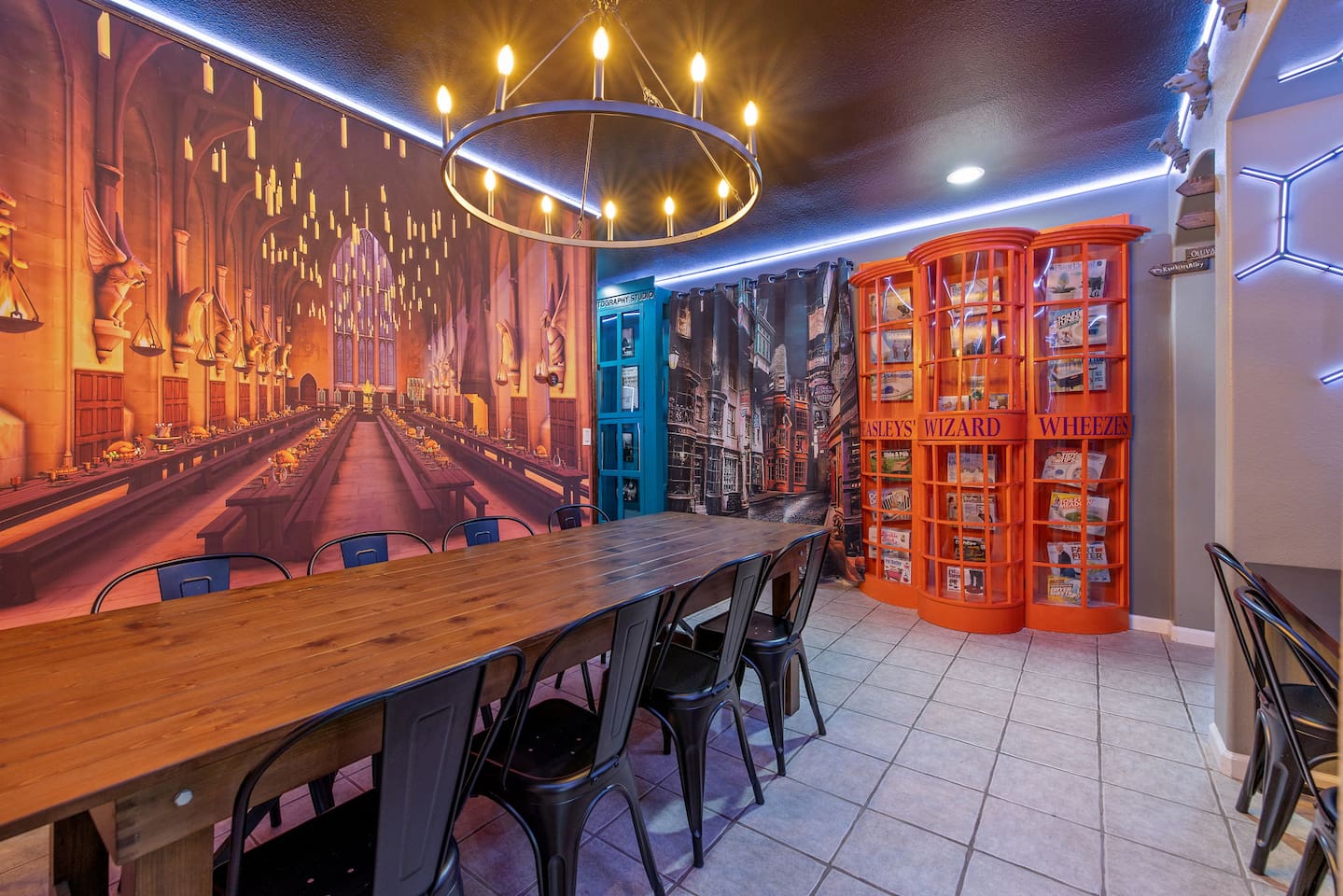 *Venue Rental Available Upon Request* Welcome to Visalia’s ICONIC immersive Wizard Themed Home, just 40 minutes from Sequoia National Park. Enjoy a full-size arcade, grand banquet-style dining room, portrait gallery hallway, vintage marketplace inspired corridor, dramatically sinister master suite with private balcony, plus a pool, 7-person hot tub, mini golf, giant chess, and more. A one-of-a-kind whimsical stay your group will never forget.