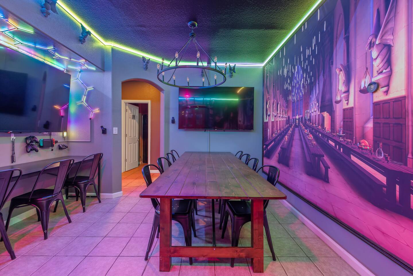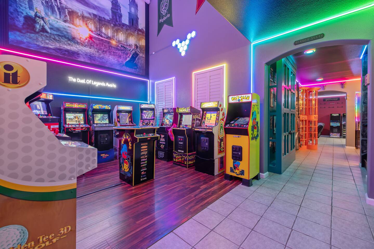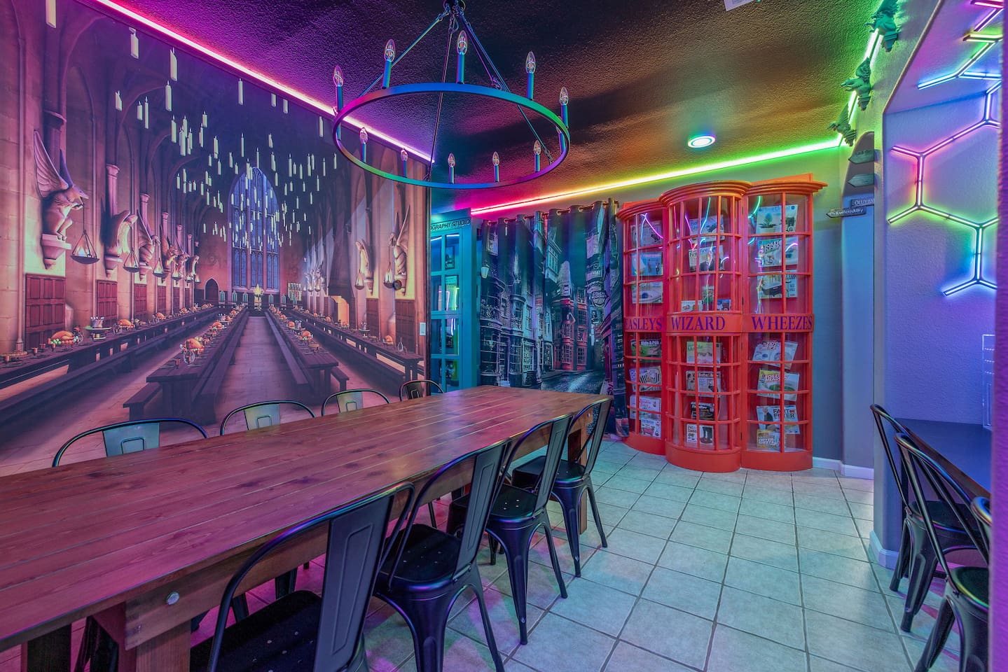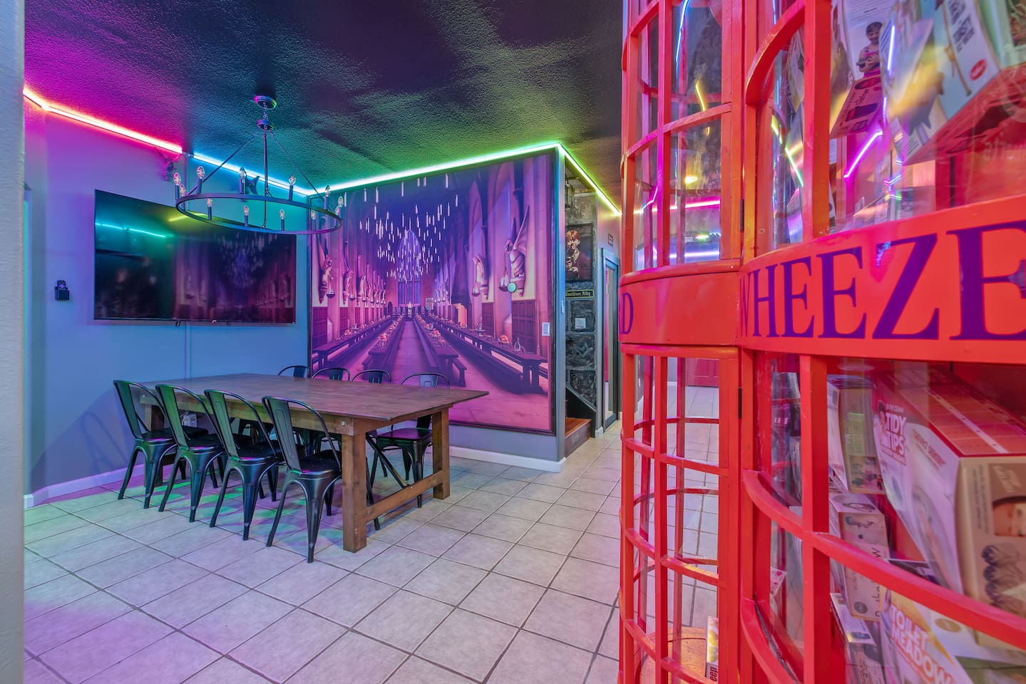 *Venue Rental Available Upon Request* Welcome to Visalia’s ICONIC immersive Wizard Themed Home, just 40 minutes from Sequoia National Park. Enjoy a full-size arcade, grand banquet-style dining room, portrait gallery hallway, vintage marketplace inspired corridor, dramatically sinister master suite with private balcony, plus a pool, 7-person hot tub, mini golf, giant chess, and more. A one-of-a-kind whimsical stay your group will never forget.