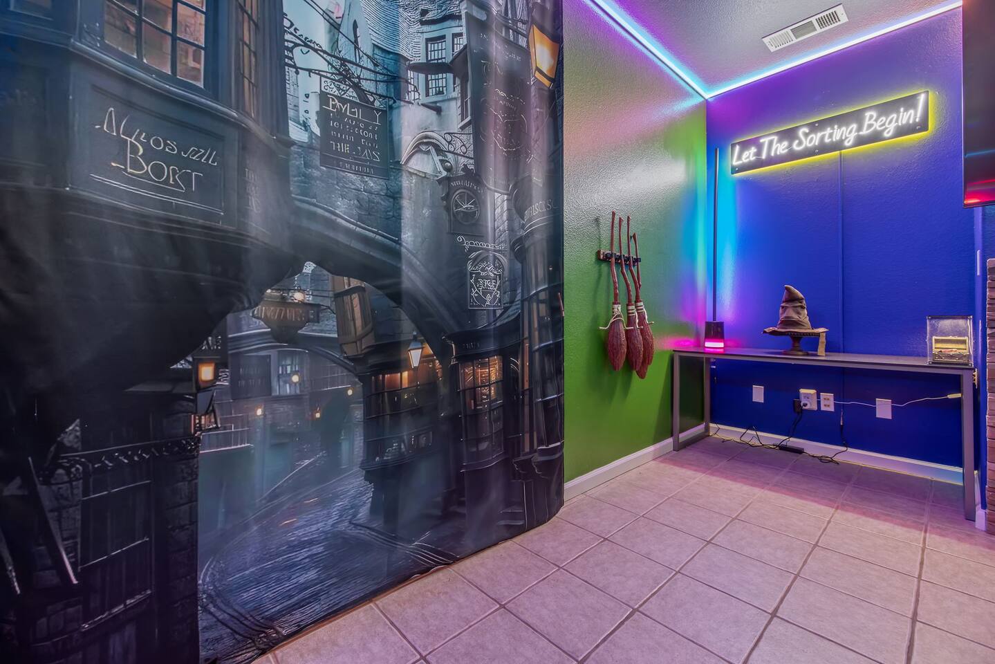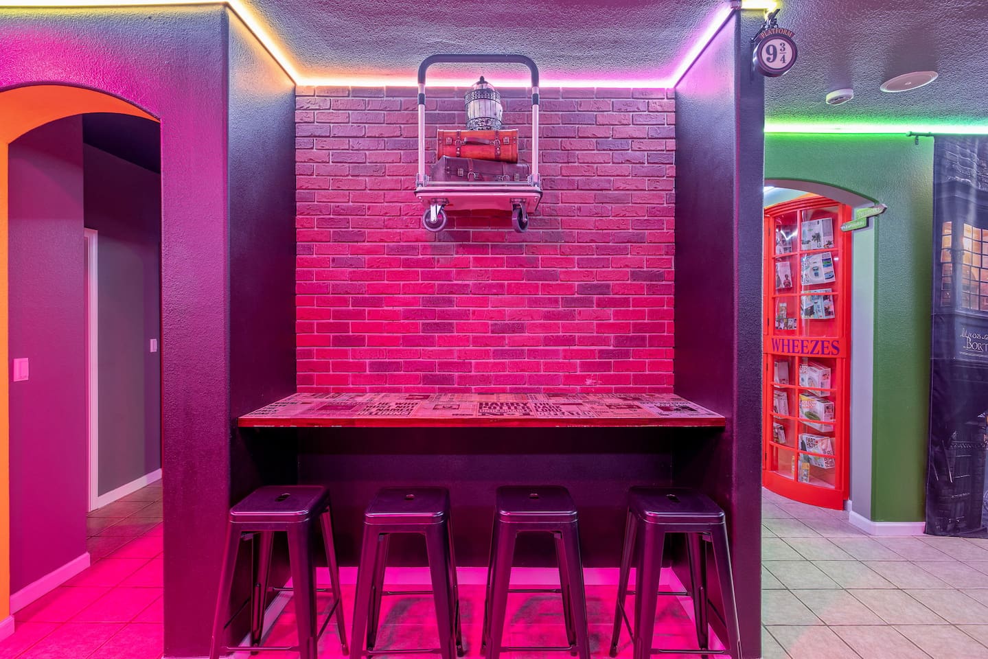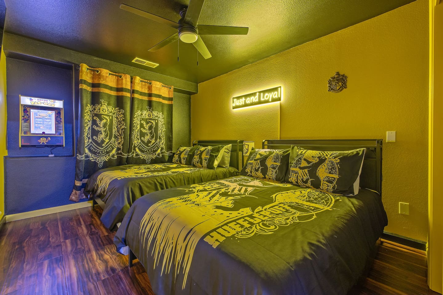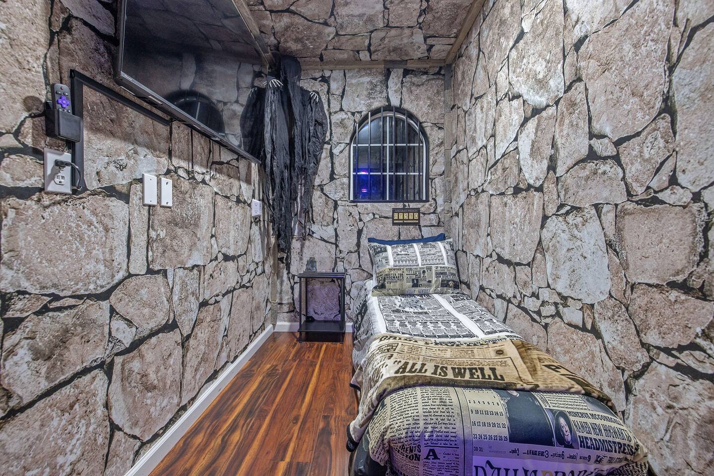 *Venue Rental Available Upon Request* Welcome to Visalia’s ICONIC immersive Wizard Themed Home, just 40 minutes from Sequoia National Park. Enjoy a full-size arcade, grand banquet-style dining room, portrait gallery hallway, vintage marketplace inspired corridor, dramatically sinister master suite with private balcony, plus a pool, 7-person hot tub, mini golf, giant chess, and more. A one-of-a-kind whimsical stay your group will never forget.