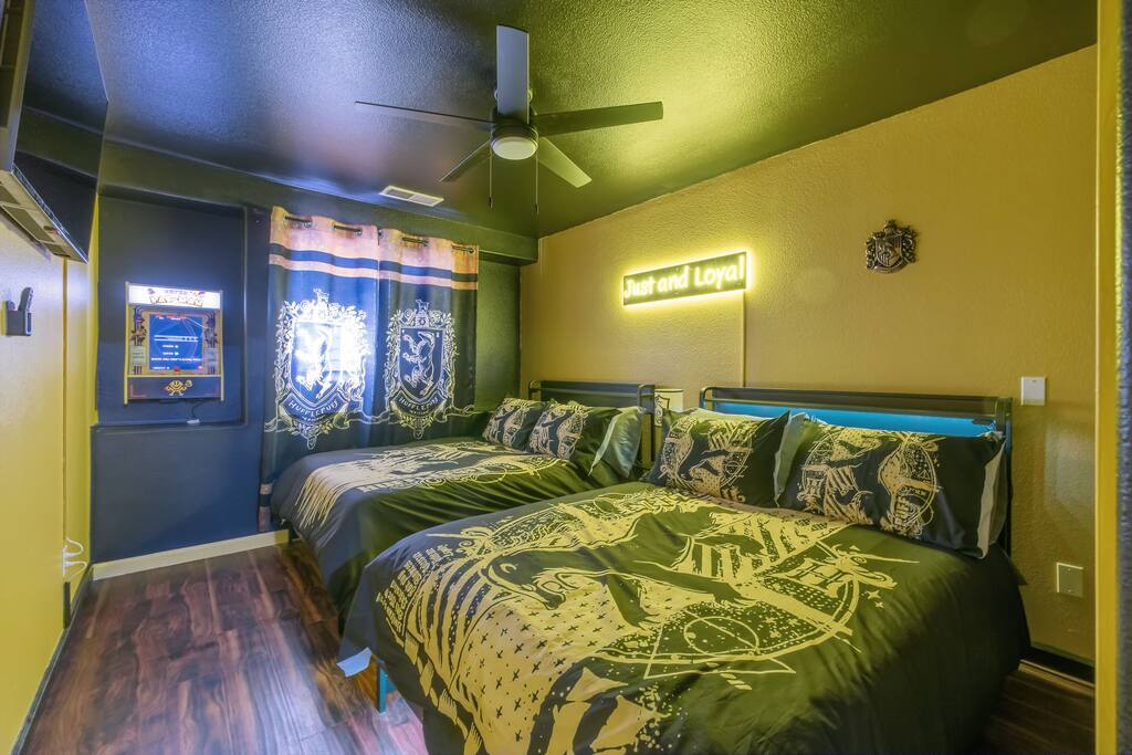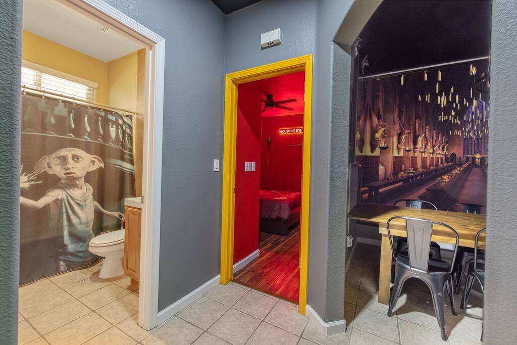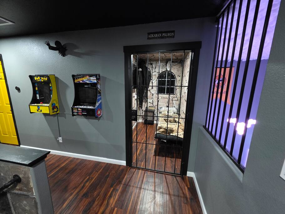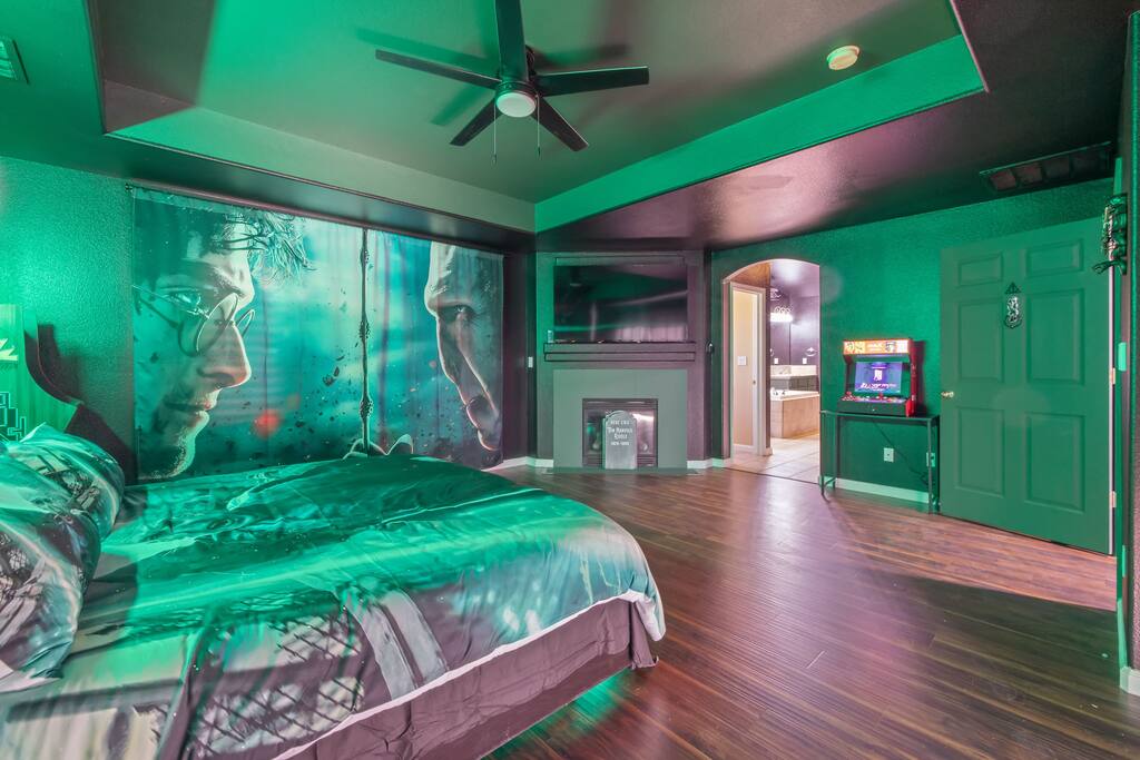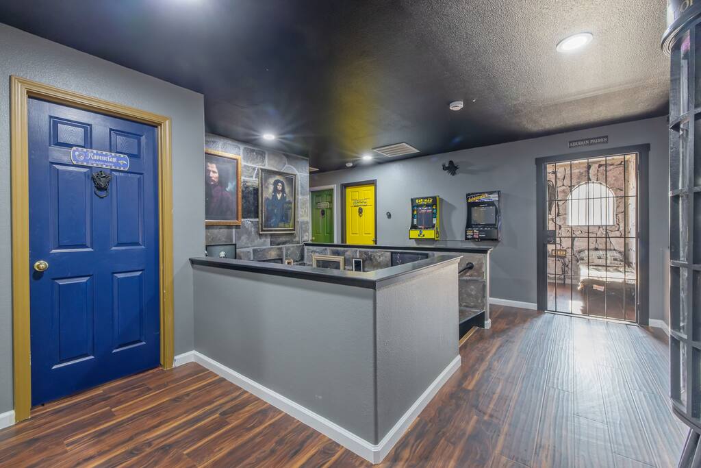 *Venue Rental Available Upon Request* Step into the Wizarding World at Visalia's ICONIC Harry Potter Themed Home, just 40 minutes away from Sequoia National Park. This home has it all, from a full size arcade, 9 3/4 Station, Great Hall, Hall Of Portraits, Diagon Alley, Azkaban Prison, Chamber Of Secrets, Private Balcony, Voldemort's Lair, Hot Tub, Pool, Mini Golf, Giant Chess and much, much more! This one of a kind home will ensure an action packed trip you and your family will never forget.