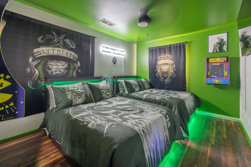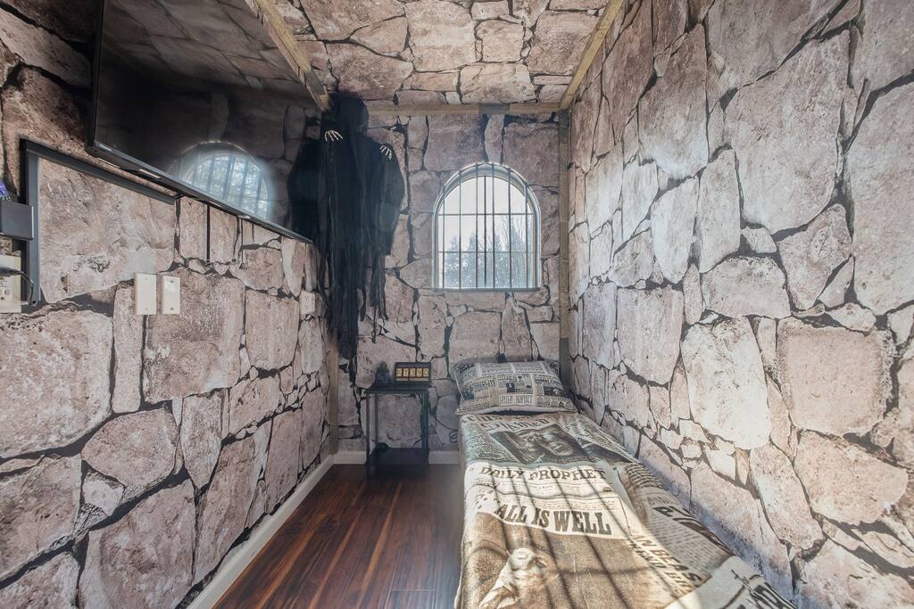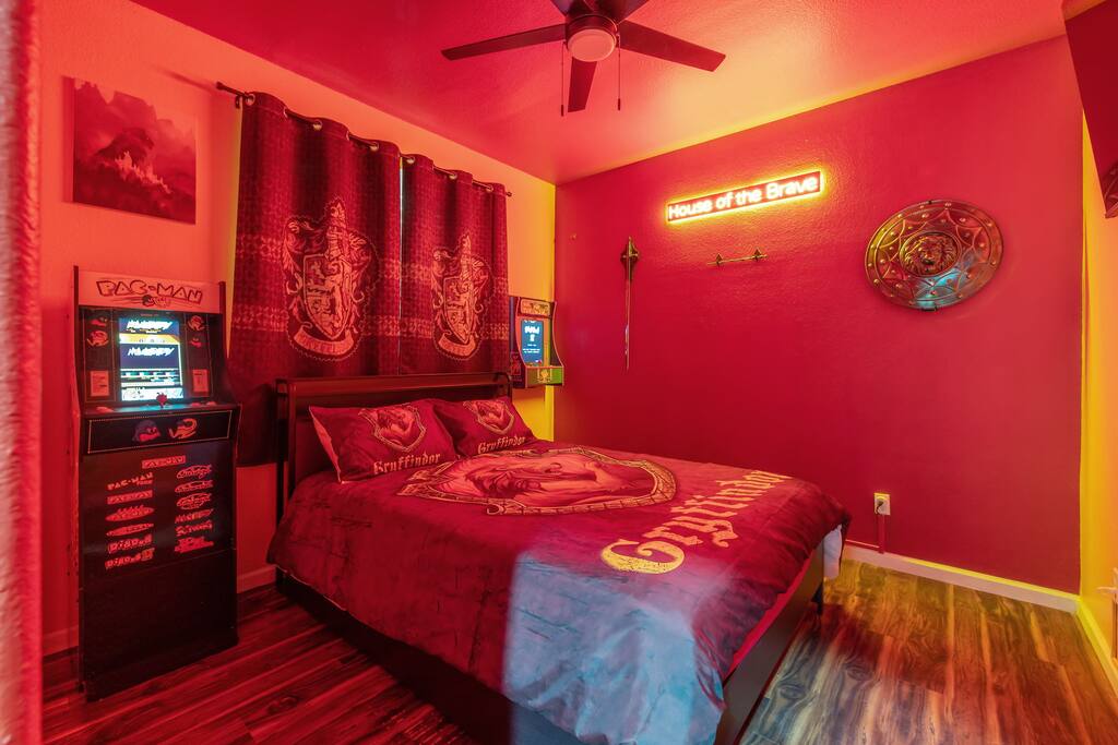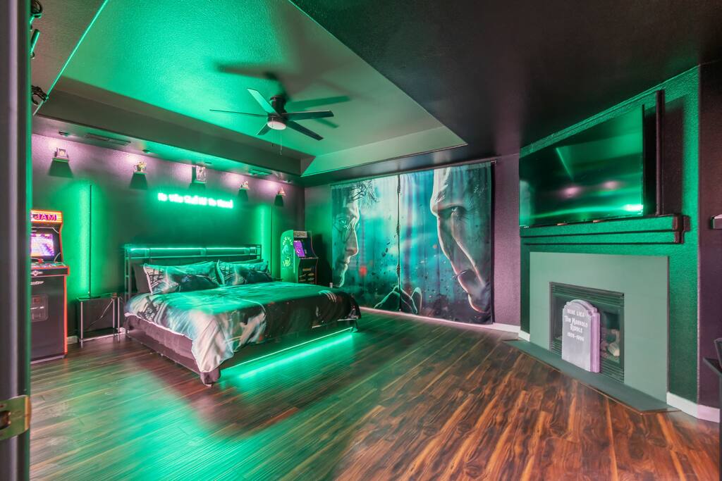 *Venue Rental Available Upon Request* Step into the Wizarding World at Visalia's ICONIC Harry Potter Themed Home, just 40 minutes away from Sequoia National Park. This home has it all, from a full size arcade, 9 3/4 Station, Great Hall, Hall Of Portraits, Diagon Alley, Azkaban Prison, Chamber Of Secrets, Private Balcony, Voldemort's Lair, Hot Tub, Pool, Mini Golf, Giant Chess and much, much more! This one of a kind home will ensure an action packed trip you and your family will never forget.